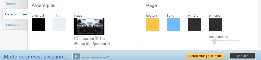 - Toute modification effectuée est immédiatement répercutée sur la prévisualisation en-dessous, vous pouvez ainsi voir ce que donnera votre thème avant de l'enregistrer.