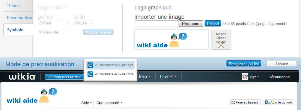 - Le logo textuel est défini au départ avec le nom du wiki. Pour le changer, cliquez sur le bouton « Modifier le texte ».